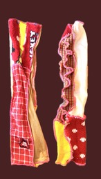 メローパッチワークに仕立てたアームカバー。